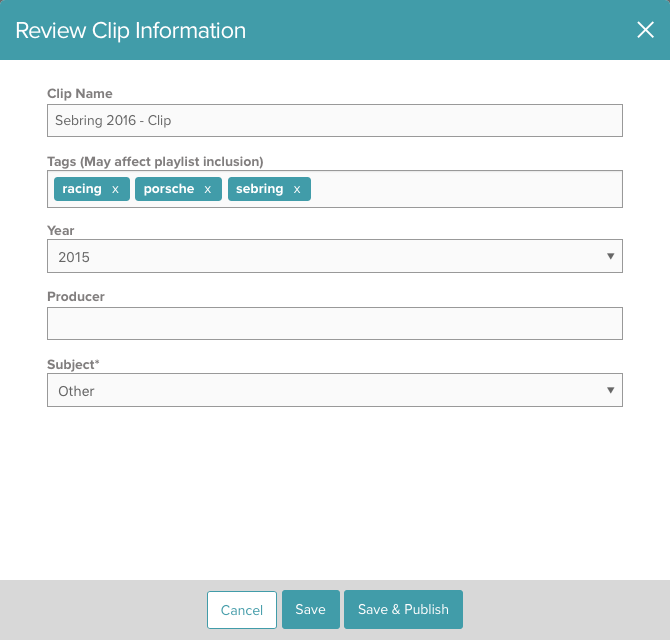 - Vérifiez les informations du clip. Le nom de l'élément, les balises et les champs personnalisés créés pour le compte peuvent être modifiés.